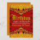 Cartão de convite real rico em vermelho e Dourado 5x7 ~ excelente para uma festa de aniversário do Ouro de sabor oriental ~ quando você chegar ao aniversário do seu número de aniversário. Design do poderoso Animalismo Tigre em laranja rico, amarelo e vermelho profundo - adequado para aniversários, graduação, show de moda, eventos noturnos, harém do Oriente Médio, gênio, noites árabes, tema asiático ou qualquer outra ocasião ou evento especial. Personalizar Personalizar o texto para se adequar ao seu evento - Todo o texto, fonte e cores são personalizáveis para cheio