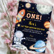 Celebre o primeiro aniversário do seu filho com um cartão de convite único e excitante para o tema "Planetas Espaciais Exteriores"! Este convite especial captura a maravilha e a aventura do cosmos, fazer que o primeiro aniversário do seu filho seja um evento para se lembrar. Apresentando ilustrações vibrantes de planetas, estrelas e foguetes, este convite é perfeito para convidar familiares e amigos a se juntarem à comemoração. Que a viagem do seu pequeno astronauta comece com este charmoso e imaginativo design que destaca o marco de seu primeiro aniversário. Prepare-se para explodir em uma festa de aniversário que está fora deste mundo!
