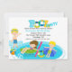 Comece a comemorar com este convite adorável. Perfeito para a piscina daquele aniversariante. Tem um fundo branco. Há uma grande piscina de natação com um adorável, bonitinho ao seu lado numa poça de água. Ele tem cabelos loiros e óculos azuis na cabeça. Na piscina está um rapaz loiro giro flutuando numa balsa. Ao lado dele está uma menina adorável com cabelo marrom flutuando em um tubo verde. No topo do convite está a palavra piscina. Os dois O's na piscina são tubos coloridos. Veja os muitos outros produtos e designs nesta linha da piscina. ©JW Ilustrations