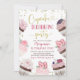 Convite de Aniversário do Partido Decorador de Cupcakes Rosa