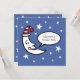 Uma ilustração da lua em seu boné noturno cercado por estrelas em um céu noturno claro.