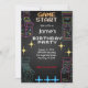 Concurso de aniversário para jogos de arcade retrorados com designs nostálgicos de jogos de arcade. Perfeito para as comemorações das crianças, este convite personalizável é ideal para qualquer festa de aniversário com tema de arcada. Faça o download e personalize instantaneamente para obter um toque exclusivo e divertido.