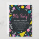 Envie este convite de aniversário engraçado e colorido e para sua festa de aniversário legal, radical, bodaciosa, tubular e suja 30. O padrão dos anos 80 faz um tema divertido e retrô para a aniversariante ou garoto do milênio.