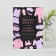 Convide convidados para a sua festa de pijama com o nosso Convite de Aniversário do Sleepover. Design cor-de-rosa e roxo com pijama, máscaras de sono, chinelos, pizza, pipoca, esmalte de unhas e elementos mais divertidos da festa PJ.