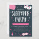 Convide amigos para uma festa de sono com este convite de aniversário rosa giro, com máscara de olho, esmalte de unha, travesseiro e pantufas cercados por corações e estrelas contra um fundo azul escuro na frente com uma bolinhas rosa nas costas. Personalize este convite de aniversário substituindo o texto do marcador de posição para adicionar suas informações. Para obter mais opções, como alterar a fonte e seu tamanho/cor ou o espaçamento entre letras, clique no botão "Personalizar". *Observe que a Marca d'água do Zazzle que aparece na visualização de zoom não aparecerá no produto impresso final. Alguns gráficos de Prettygrafik Design (https://www.etsy.com/shop/Prettygrafikdesign). por © Rosewood e Citrus