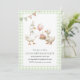 Celebre o seu grande dia com este doce convite de aniversário, em verde-senso macio! Apresentando dois adoráveis duklings aquosos, um bolo de aniversário, balão e bunting festivo, este design é enquadrado em uma fronteira pastel gingham — perfeito para um tema de fazenda animal ou rural. Ideal para meninos ou celebrações neutras em relação ao gênero. Totalmente personalizável com os detalhes do evento e impresso em papel premium. Junte-o à coleção de festas de cheio para uma celebração encantadora e coesa!