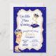 Convite para o Príncipe Aniversário. aniversário de 3 anos.. convite para aniversário de 3 anos do Príncipe Real Azul e Ouro com bebê vintage com coroa.