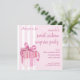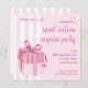 Ilustração de um presente bonito, envolto em um belo papel riscado, rosa e branco, amarrado com uma fita e um arco cor-de-rosa. Uma ideia elegante e divertida para um amigo, ou amante da cor rosa! Excelente de aniversário, aniversário, obrigado, parabéns ou ocasião especial. Também corresponde ao: