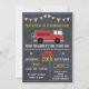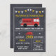 O convite de aniversário do quadro de chanfro deste rapaz apresenta um motor de incêndio giro e o boné do bombeiro num fundo de chalkboard digitalizado. A design também inclui uma bandeira branca e amarela de revestimento e alguns elementos decorativos como estrelas, banner e mergulhadores. O design é influenciado pela arte do quadro de proteção e também pela arte do estêncil. Este convite para quadros de correspondência pode ser utilizado para várias idades e é particularmente adequado para uma festa de aniversário temática do motor de incêndio. Está pronto para você personalizar.