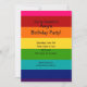 Convite de aniversário do Rainbow com o padrão arco-íris rosa, vermelho, laranja, amarelo, verde, azul e roxo