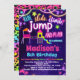 Corra, salta e brinca com um convite de aniversário de recreio em cores bonito do arco-íris para raparigas.