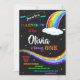 No convite de aniversário do arco-íris Convite de aniversário mágico para garoto ou garota Convidado colorido. Convide seus amigos para uma festa mágica com este brilhante e colorido sobre o arco-íris de convite divertido! Este convite para o tema do arco-íris apresenta dois arco-íris, um com uma nuvem no final e algumas estrelas coloridas ao redor. Simplesmente edite este menu de personalização fácil de usar modelo para torná-lo especial.