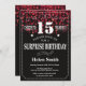 Chamada de Aniversário do 15 de Surpresa Vermelha. Tipografia Branca. Fundo do quadro negro e branco. Aniversário de criança. Homens ou Mulheres Aniversário. Menino ou Menina Menina Menina Adolescente Convidam. 13 15 de 16º 18º 20 21rua 30 de 40º 50º 80 de 60º 70 de 100º. Qualquer Idade. Para mais personalização, clique no botão "Personalizar" e use nossa ferramenta de design para modificar este modelo.