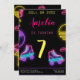 Este convite de aniversário em néon brilha é perfeito para o aniversário do seu filho ou da sua garota. Com skates legal de roletas, um flamingo, Sol e Vintage record, este convite tem uma sensação retrógrada. Excelente para uma discoteca de roller ou um parque de diversões, o arco-íris ajustado perfeitamente o tema do skate de roletas.