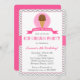 Está aqui a colher! Convite de aniversário cor-de-rosa e cinzento do sorvete com fundo do teste padrão da viga.