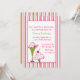 O convite de aniversário da menina doce feito com um rosa, um fundo listrado do verde, e o branco, e uma área de texto branca mergulhada, sobre o fundo. Os gráficos dos deleites bonito de um rosa, do verde, e os brancos do sorvete decoram o inferior esquerdo do convite. O texto no rosa e no verde é inteiramente customizável para suas necessidades do partido. Grande convite à festa de aniversário de alguma menina.