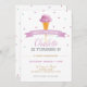 Uma doce celebração! Este convite temático de sorvete impresso de frente e verso é perfeito para um aniversário! Inclui aspersão rosa, roxa e lacre.