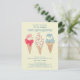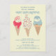 Novo para o Verão de 2024. Nosso "Sorvete, Gritar Que Todos Nós Gritares Feliz 100º Aniversário!" Cartaz postal do convite. Três cones retrorados de sorvete de aquarela com sorvete vermelho, branco e azul patriótico e aspersores ocupam o palco central acima de seus detalhes de festa de aniversário.