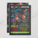 Convite de aniversário de pinça de Fidget colorido em um fundo de quadro. Excelente para um menino ou menina. Ilustração desenhada à mão por McBooboos