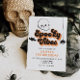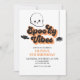 O convite de aniversário do Spooky Vibes Halloween com fantasma, morcego e aranha.