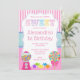 Um convite muito bonito para uma festa de aniversário tematizada do Candy Sweet Shoppe.