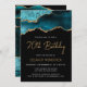 Este elegante convite de aniversário apresenta uma imagem de aquarela de um geode agado em tons de azul lacrimogêneo com realces de brilho dourado falsos. As palavras "70 Birthday" aparecem em um guião de escrita de mão dourado moderno. Personalize-o com o nome da honraria em texto dourado e os detalhes em branco sobre fundo preto. Um design de metal e de ouro correspondentes aparece no verso.
