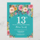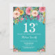 Teal Floral 13º Convite de Aniversário para Rapariga. Flor Floral de Aquarela. Teal Aqua Turquoise. Rosa, Amarelo, Laranja, Flor Roxo. Aniversário Adulto. 13 15 16º 18º 20 21rua 30 40º 50º 60º 80 de 70 100º, qualquer idade. Para mais personalização, clique no botão "Personalizar" e use nossa ferramenta de design para modificar este modelo.