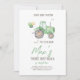 Este convite de aniversário apresenta um trator verde giro com balões coloridos à deriva, e o nome exibido em letras grandes e alegres. É tudo sobre diversão e entusiasmo para a próxima festa de aniversário com tema de trator verde