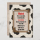 O convite de aniversário do tema ocidental do garoto feito em um velho olhar de pergaminho, com um padrão de pele de vaca. Gráficos de ícones de temas ocidentais decoram o quadro. O texto preto e vermelho é totalmente personalizável para atender às necessidades do seu partido. Excelente para qualquer garoto.