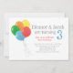 Este convite de aniversário para gêmeos inclui balões coloridos para a festa de aniversário clássica de uma criança! Perfeito para rapazes, raparigas ou ambos! © 2023 Tea Olive Co.