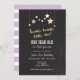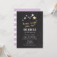Convite de aniversário Twinkle Twinkle Little Star num esquema de cor roxa, estrelas douradas falsas ilustrando um fundo estilo chalkboard. Perfeito para a primeira festa de aniversário de uma menina.