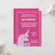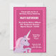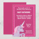 Unicorn Aniversário convida de rosa e roxo. Personalize facilmente com os detalhes da sua festa.