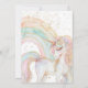 Belo convite de aniversário de monocórnio com arco-íris e sotaques de ouro falsos.