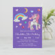 Este convite de aniversário unicórnio faz parte de um conjunto correspondente de acessórios de festa de aniversário. Sua garotinha vai gostar de cada momento mágico de seu dia especial. Esta design apresenta as cores do arco-íris com especial ênfase no rosa e roxo. Você encontrará um unicórnio mágico e balões, juntamente com fontes fáceis de ler, e muito espaço para adicionar todas as suas informações exclusivas. Para qualquer necessidade especial de design, fique à vontade para entrar em contato com o designer, enviando um email para choosehappystudio@yahoo.com