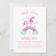 Um unicórnio cor-de-rosa giro cercado de corações e parado num arco-íris e decora esta linda menina convite de aniversário unicórnio. Personalize para sua festa de aniversario de meninas. Projetado para você pelo Blackberry Boulevard.