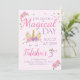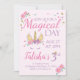 Convite de Aniversário do Unicórnio Mágico! Os detalhes de brilho são simulados no trabalho de arte. No fazer deste produto não será utilizada qualquer brilho real.