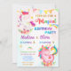 Junte-se a nós para um aniversário mágico! Convite de aniversário mágico do Unicórn Convite de Watercolor Unicorn Convite mágico Convite de aniversário mágico. Convide seus amigos com este convite para o tema mágico de aquarela fofo! Este convite de aniversário de unicórnio apresenta dois pequenos unicórnios felizes, terra colorida, algumas flores e arco-íris ao redor. Simplesmente edite este menu de personalização fácil de usar modelo para torná-lo especial.