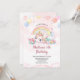 unicórnio-cama bonito debaixo do arco-íris com balões e presentes de aniversário
