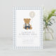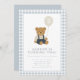 Celebre o grande dia do seu filho com este charmoso convite de aniversário do ursinho de pelúcia azul-claro. Apresentando um doce ursinho marrom segurando um balão e vestido em macacões, este adorável design é perfeito para uma rua, segundo ou celebração de aniversário infantil. O padrão de gingham azul claro adiciona um toque suave e clássico, fazer ideal para chás de fraldas ou festas de aniversário com tema de urso. Personalize com o nome do seu filho e os detalhes da festa. Este aconchegante e eterno urso de pelúcia convida fatos para qualquer tema de creche de gingham ou de festas de animais macios. Um nome perfeito e um convite para todos em um!