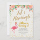 Vamos Flamingle Birthday Invitation com flamingo e dourado. Pode ser usado para aniversário, chá de fraldas, chá de panela, etc.