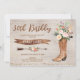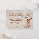 Qualquer Convite de Aniversário de Boot Floral Ocidental da Idade Este convite de aniversário temático ocidental apresenta uma bota de aquarela, dois arranjos florais, uma seta e um banner sobre um fundo de aquarela parecido com madeira. Excelente para alguém que tenha uma festa de aniversário no estilo country ou ocidental.