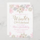 Winter Wonderland ONEderland festa de aniversário convidada com flocos de neve rosa, dourados e prateados