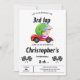 Celebrar o dia especial do seu filho com o nosso cartão de convite de aniversário personalizado, com um rapaz alegre a conduzir um carro de corrida vermelho vibrante! Este design branco mostra um capacete verde brilhante com sotaques de bandeira verificados e um visor azul claro, trazendo diversão extra ao convite. Com bordas arredondadas e placas gráficas de chama, esta ilustração rápida do carro de corrida é perfeita para poucos entusiastas de corrida. Tornar o seu aniversário inesquecível com um convite que dá o tom para uma celebração excitante!
