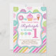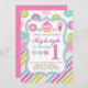 Este convite de aniversário doce adorável da loja caracteriza um cheio colorido do design de polvilha, listras, bolinhas e o doce trata incluir um cupcake, uns doces, uma rosquinha, uns pirulitos e um sorvete! Este é o convite perfeito para todo o tema dos doces ou convite doce da loja para qualquer idade!