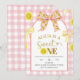 Convite de Aniversário de 1 Ano Coquete Laço Limão Rosa e Amarelo, Convite de Aniversário de Menina, Plaid Editável para Crianças