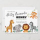 Edite todo o texto neste convite fofo de animais da savana. Todo o texto é editável para funcionar com o seu evento. Ótimo para tema de selva, tema de safari, tema de animais de festa e festa do zoológico!