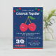 Encontrem seus convidados com esta festa de aniversário gêmea convidando com cerejas adoráveis com elementos vibrantes contra um fundo azul escuro. Basta adicionar os detalhes do seu evento neste modelo fácil de usar para torná-lo um convite de tipo único. Sacudir a placa para revelar um padrão elegante de listras vermelhas e brancas na parte traseira da placa.