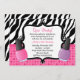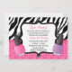 Convite cor-de-rosa e preto do aniversário do partido dos termas da listra da zebra. Características cor-de-rosa e verniz para as unhas sparkly roxo. Alguns elementos JDDigiDesign