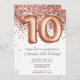 Convite de aniversário Dourado 10º rosa e rosa-ouro elegante e moderno 10º convite de aniversário para uma menina de 10 anos com modernos roteiros escrevendo e balões de folha divertida.