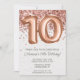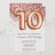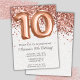 Convite de aniversário Dourado 10º rosa e rosa-ouro elegante e moderno 10º convite de aniversário para uma garota de 10 anos com escrevendo de escrita moderno e balões de folha divertida com fundo de papel de textura impresso.